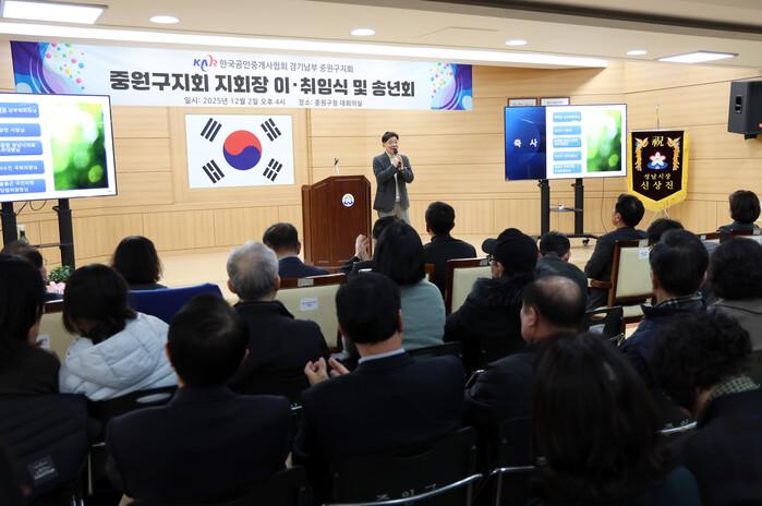 [성남=오왕석 기자] 성남시의회(부의장 안광림을 비롯한 의원들)는 2일 중원구청 대회의실에서 열린‘한국공인중개사협회 중원구지회 송년회’에 참석했다. 이날 행사는 한 해의 활동을 정리하고 새로운 출발을 다짐하는 자리로, 개회 선언과 국민의례를 시작으로 내외빈 소개, 지회장 이·취임식, 표창장 수여 등이 차례로 진행됐다.