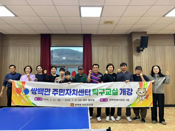 이번 탁구교실은 이성옥 전문 강사의 지도하에 3월 23일부터 7월 31일까지 매주 월요일 18시 30분부터 20시 30분까지 쌍백면 복지회관에서 진행된다. 기초 동작을 배우고 실전 감각을 익히면서 이웃 간 교류의 기회도 제공될 것으로 기대된다.
