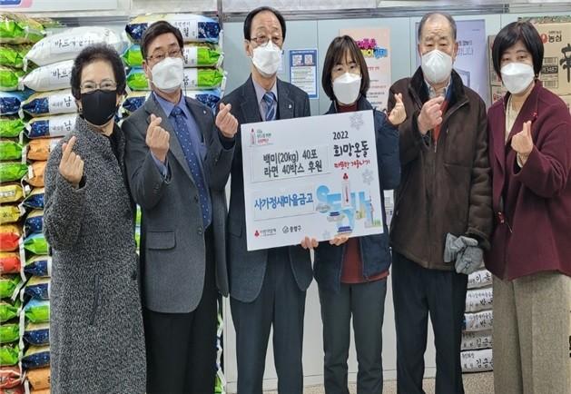 중랑구 면목제3·8동 주민센터가 지난 24일 사가정새마을금고로부터 2022 희망온돌 따뜻한 겨울나기 성품으로 쌀 40포(포당 20kg)와 라면 40상자를 전달받았다. 기탁받은 성품은 ‘사랑의 좀도리 운동’을 통해 마련한 것으로, 추운 겨울 어려운 이웃에게 전달될 예정이다. 사진은 전달식에서 관계자들이 기념촬영을 하는 모습. (사진제공=중랑구청)