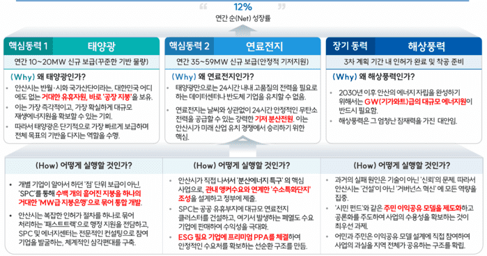 이를 실현하기 위한 핵심 전략으로 안산시가 직접 재정을 투입하는 방식을 넘어, 민간 투자를 이끄는 ‘플랫폼 지방정부’로 전환할 것을 제안했다. 특히 반월·시화 산단의 광활한 공장 지붕을 하나로 묶어 규모의 경제를 실현하는 ‘산업단지 태양광 지붕은행’ 구축과 이를 주도할 특수목적법인(SPC) 설립이 시급하다고 제언했다.