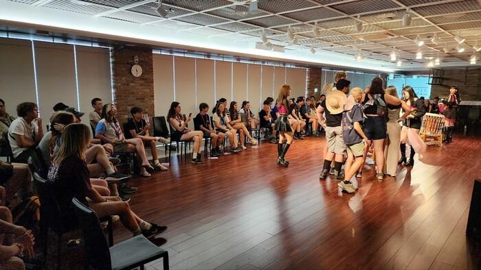 | ▲ 9일 마포아트센터에서 스위스 잼버리 참가 대원들이 퓨전 국악 체험 활동을 하고 있다. (사진=마포구청 제공) |