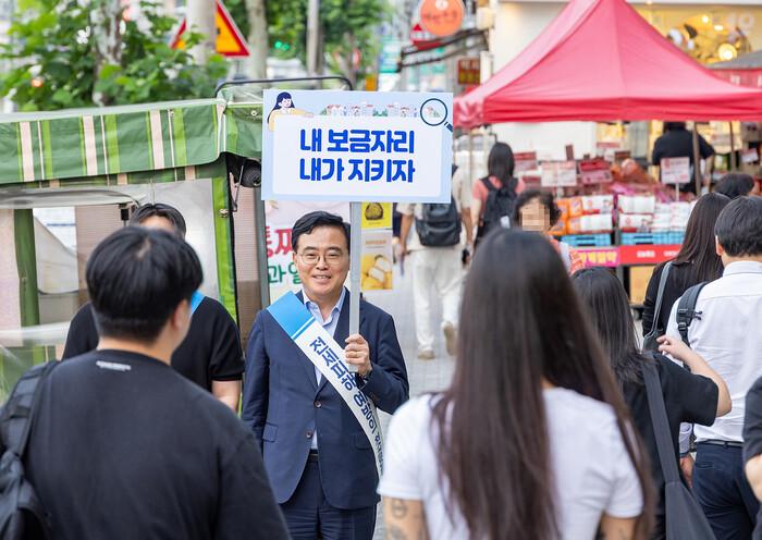| ▲ 지난 6월 전세사기 피해 예방 캠페인에 나선 진교훈 구청장의 모습. (사진=강서구청 제공) |