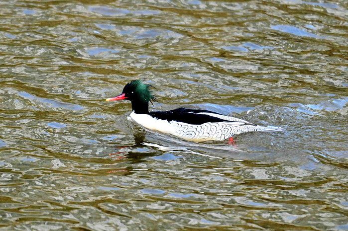 | ▲ 중랑천-청계천 합류부에서 발견된 호사비오리 수컷. (사진=성동구청 제공) |