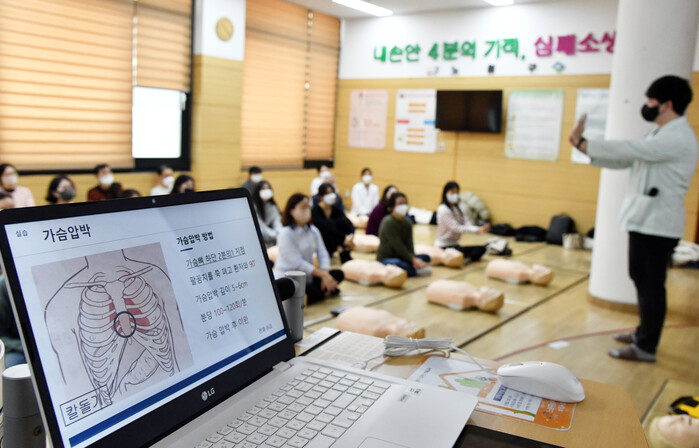 | ▲ 심폐소생술 교육 실시 모습. (사진=노원구청 제공) |
