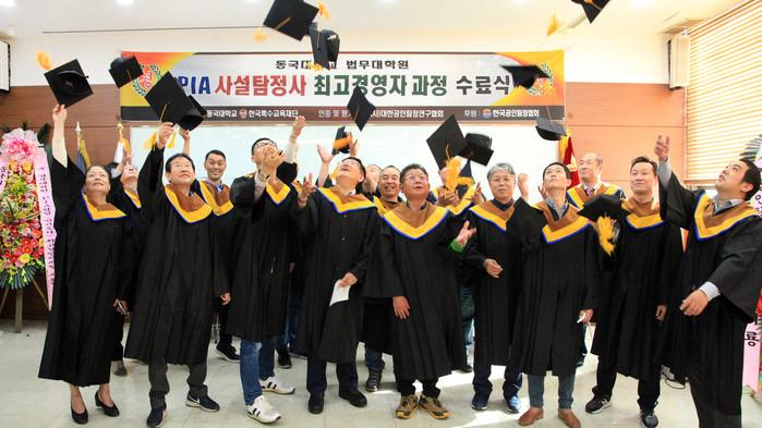 이날 수료식에는 동국대학교 법무대학원 강동욱 前 원장, 한국특수교육재단 정학균 총장, 한국공인탐정협회 하금석 회장, 대한공인탐정연구원 백기종 원장 등이 참석하여 진행했다.