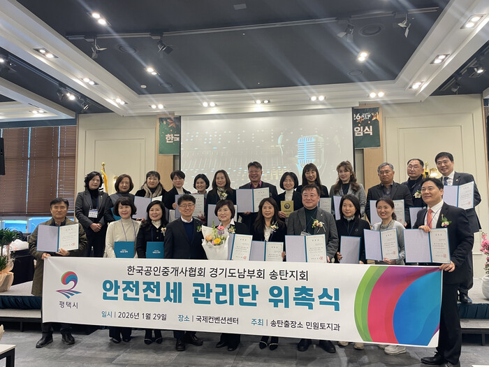 한편, 송탄출장소는 이번 위촉식을 시작으로 지역 공인중개사 네트워크와의 긴밀한 소통을 강화하고, 전세 사기 근절을 위한 실효성 있는 시책을 발굴하여 신뢰받는 부동산 중개 문화를 정착시켜 나갈 계획이다.