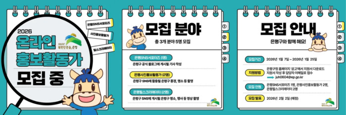은평구 온라인 홍보활동가는 은평구의 숨은 명소와 주요 행사 등을 직접 취재하고 콘텐츠로 제작해 구민의 시선에서 생생한 소식을 전하는 역할을 맡는다. 주민 공감을 이끌어 내는 ‘은평형 참여 홍보’를 강화하기 위한 취지다.
