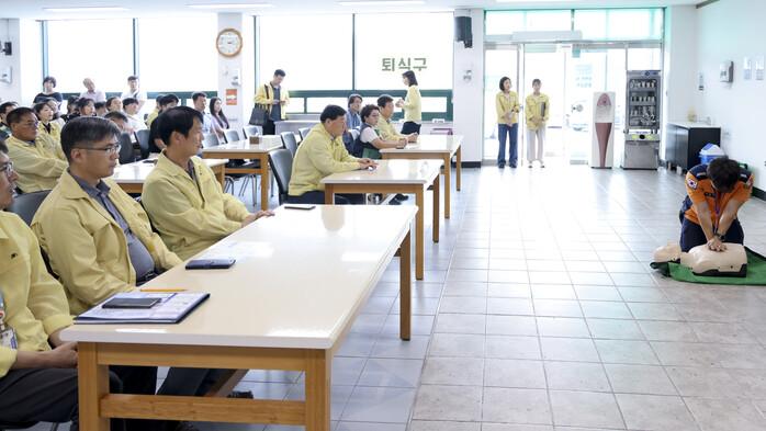 또한 군청 직원들은 합천군수의 지휘 아래 시범대피소로 지정된 청사 내 지하 구내식당으로 대피해 비상시 행동요령 청취 및 심폐소생술 교육에 참여했다.