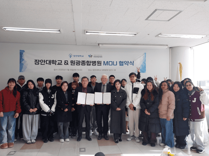협약식에는 장안대학교 이종진 총장과 원광종합병원 박천권 관리이사가 참석했으며, 2025학년도 글로벌케어복지과에 입학한 외국인 유학생들도 함께해 협약의 의미를 더했다.