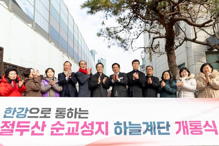개통식 당일 현장에는 박강수 구청장과 백남환 마포구의회 의장을 비롯해 절두산 순교성지 관계자와 천주교 신자, 지역주민 등 약 150명이 참석해 하늘계단 완공을 함께 기념했다.