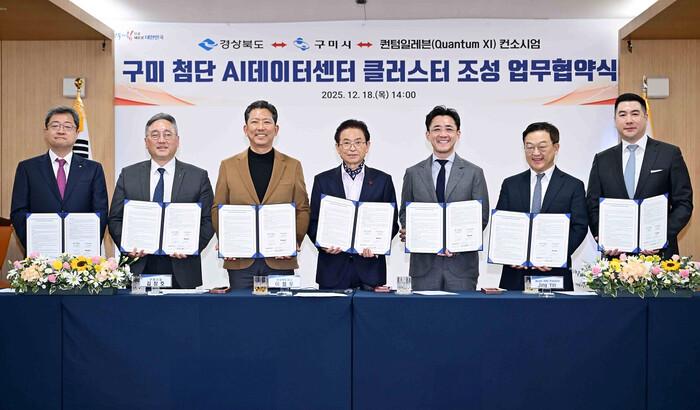 [안동=박병상 기자] 경상북도와 구미시는 18일 경북도청 경북시대에서 퀀텀일레븐(Quantum XI) 컨소시엄과 함께 ‘구미 첨단 AI 데이터센터 클러스터’ 조성을 위해 4조 5천억원 규모의 업무협약을 체결했다.