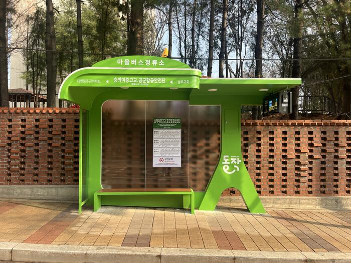 | ▲ 동작구형 마을버스 승차대와 BIT가 설치된 모습. (사진=동작구청 제공) |