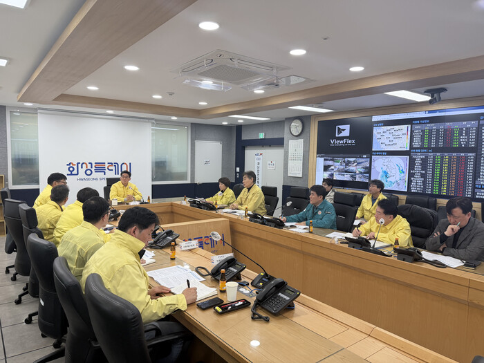 | ▲ 윤성진 화성특례시 제1부시장이 가축질병 재난안전대책본부 긴급회의를 하고 있다 /사진제공=화성특례시 |
