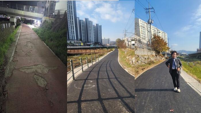 이에 처인구는 2025년 9월부터 11월까지 약 3개월간 정비공사를 진행해 전 구간을 재포장하고 보행 안전을 위한 기반을 정비했다. 이번 공사를 통해 표면 파손이 심했던 기존 보행로가 균일하고 안전한 구조로 개선되었으며, 이용자들이 보다 쾌적하게 산책과 자전거 이동을 할 수 있는 환경이 조성되었다.