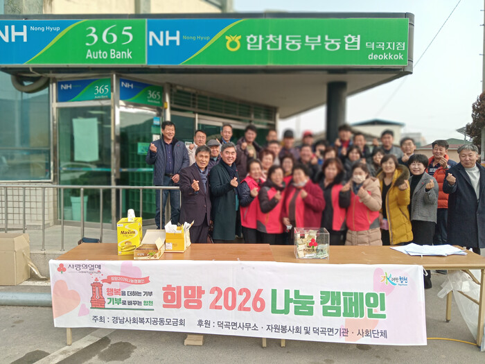 정상준 덕곡면장은 “모금활동에 동참해 준 면민들에게 감사를 전하며, 1월 31일까지 ‘희망2026나눔캠페인’ 집중 성금 모금 활동을 이어갈 예정이니 많은 관심과 참여를 부탁한다”고 말했다.
