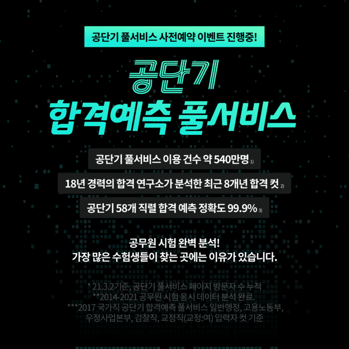 [시민일보 = 여영준 기자] 에스티유니타스의 공무원 시험 전문 브랜드 ‘공단기’는 오는 4월 2일 치러지는 국가직 공무원 9급 필기 시험을 앞두고 ‘2022년 국가직 9급 시험 합격예측 풀서비스’를 제공한다고 16일 밝혔다.