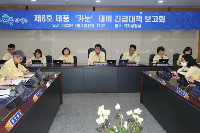 [시민일보 = 여영준 기자] 관악구(박준희 구청장)가 최근 제6호 태풍 ‘카눈’ 대비 긴급 대책보고회를 개최했다.