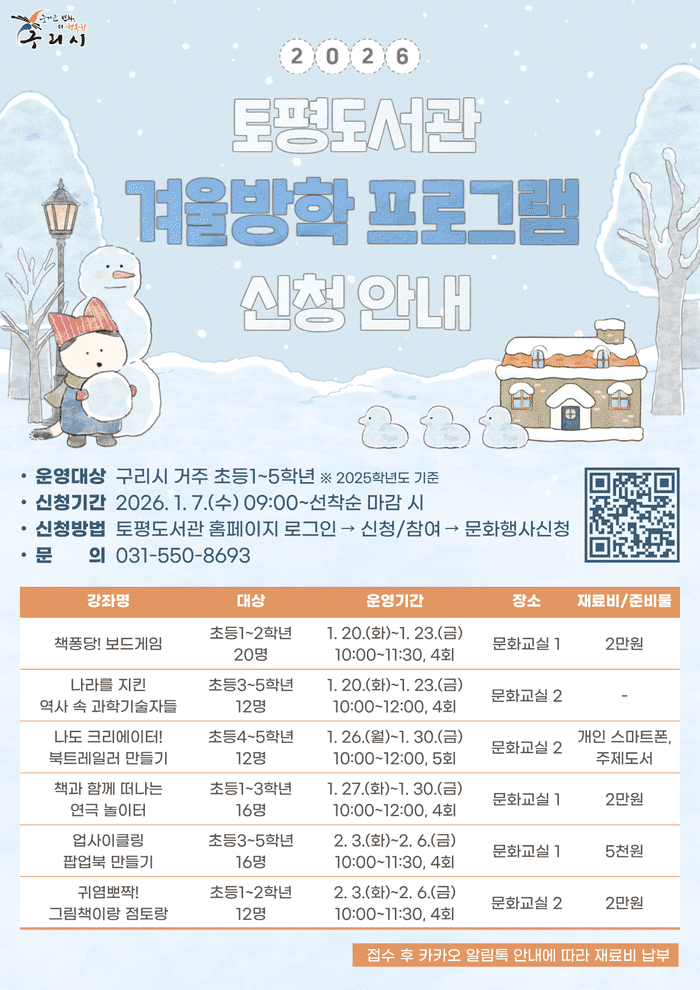 겨울방학을 채우는 구리시 도서관만의 특별한 시간
