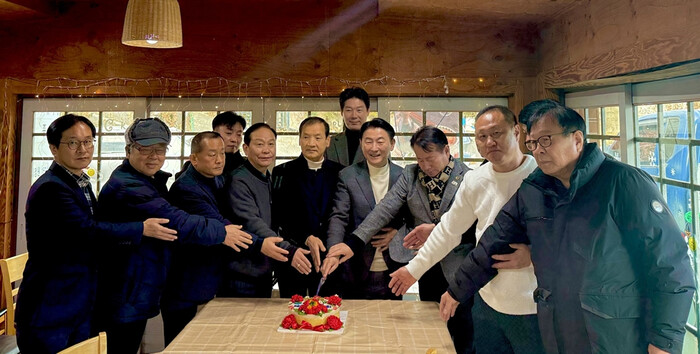 경기 의정부시 체육진흥위원회가 최근 2026년 병오년을 맞아 새해 첫 정기회의를 개최했다. 회의에 참석한 각 동 회장들은 최근 늘어나는 다양한 체육 수요에 발맞춰 동별 체육활동 지원 및 활성화 방안을 논의했다. 사진은 정기회의에 참석한 김동근 시장이 관계자들과 함께 케이크 커팅을 하는 모습. (사진=의정부시청 제공)
