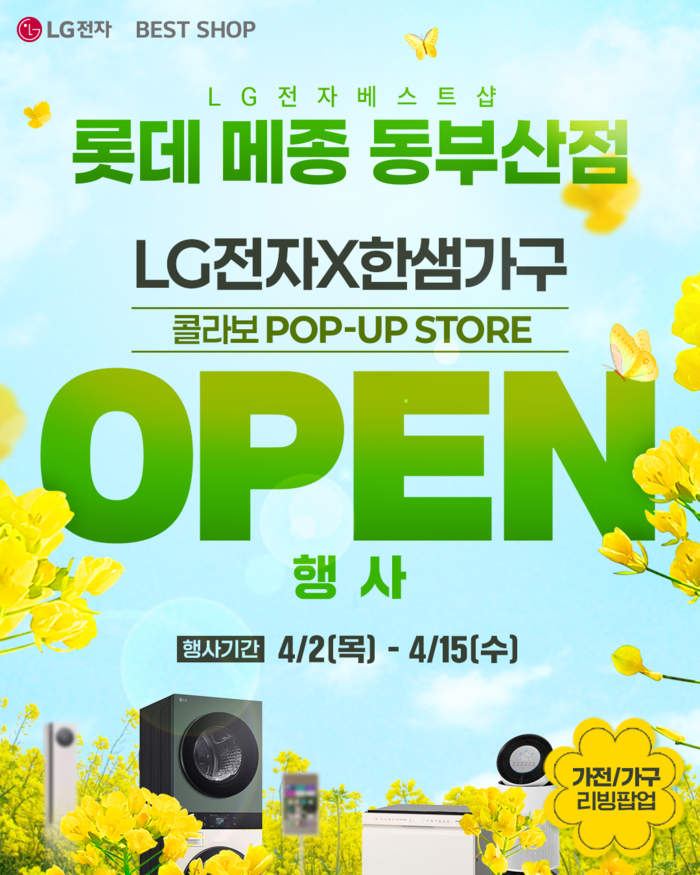 한편 행사 혜택은 기간 내 한정 제공되며 일부 품목은 제외될 수 있다. 자세한 행사 내용과 조건은 LG전자 베스트샵 롯데 메종 동부산점 매장 문의를 통해 확인할 수 있다.