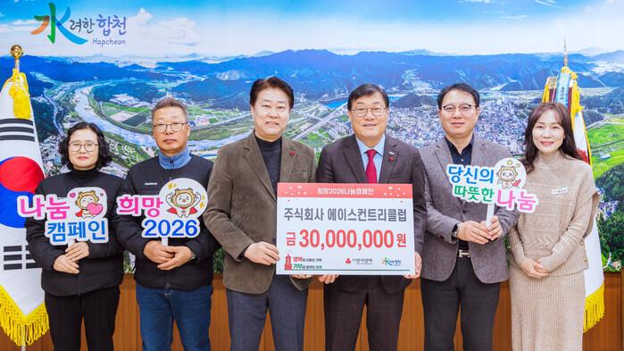 [합천=이영수 기자] 합천군(군수 김윤철)은 24일 합천군 가야면에 소재한 아델스코트 컨트리클럽 임직원 일동이 합천군청을 방문해 이웃돕기 성금 3,000만원을 지정기탁했다고 밝혔다.