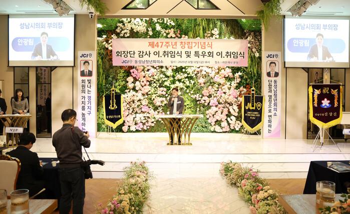 [성남=오왕석 기자] 성남시의회(부의장 안광림을 비롯한 의원들)는 12일 라운제나 분당에서 열린 동성남청년회의소 창립기념식 및 회장단 이‧취임식에 참석해 지역 청년 리더들의 책임 있는 역할 수행과 공동체 발전을 위한 활동을 높이 평가했다. 행사장은 역대 회장들의 입장과 기념사진 촬영으로 문을 열며 청년회의소의 전통과 역사적 의미를 되새기는 분위기로 진행됐다.