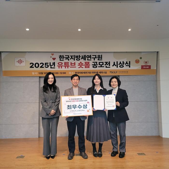 이번 공모전은 국민의 지방세 및 재정에 대한 이해와 관심을 높이기 위해 한국지방세연구원이 개최한 전국 단위 홍보 영상 경연으로, 담당부서 심사와 전문가 평가, 온라인 반응 등 3단계 심사를 거쳐 총 12편의 수상작이 선정됐다.