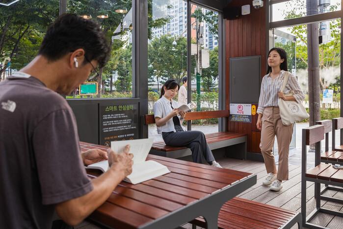 또한, 냉난방기와 공기청정기를 설치해 폭염과 한파, 미세먼지 등에 대비했고, 휴대전화 충전기, 근거리 무선망, 혈압측정계, 자동 심장충격기, 도서 등 다양한 편의 시설도 갖췄다.