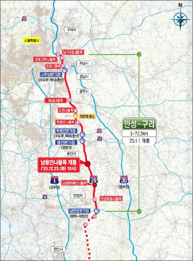 지난 10월 국토교통부의 연결허가 최종 승인을 받은 동용인IC(가칭)는 북용인IC와 남용인IC 사이 양지 졸음쉼터 인근에 신설된다. 동용인IC의 하루 예상 교통 수요는 2만 7000여 대 이상으로 동용인IC 신설 시 인근 지역 교통 분산, 물류 효율성 증대 등이 기대된다.