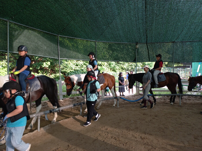 승마 체험은 5주간 총 10회 강습으로 진행되며, 인덕원승마스쿨에서 기본자세와 안전수칙, 말 끌기 등 기초 교육을 받게 된다.