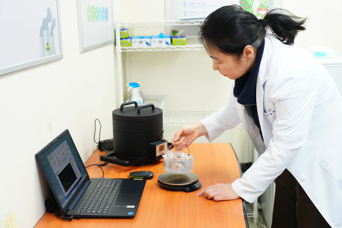 | ▲ 중랑구 보건소 수산물 방사능 검사 모습. (사진=중랑구청 제공) |