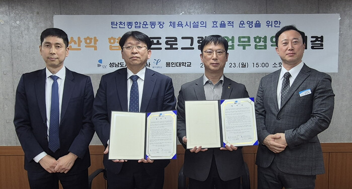 [성남=오왕석 기자] 성남도시개발공사(사장직무대행 박경섭) 탄천종합운동장은 지난 23일 용인대학교 체육과학대학과 공공체육 활성화 및 전문인력 양성을 위한 업무협약(MOU)을 체결했다고 24일 밝혔다.