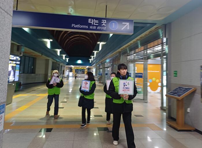 이번 캠페인은 퇴근 시간대 이용객이 많은 서정리역을 중심으로 역사 주변 및 상업지역의 금연구역을 중심으로 이루어졌으며, 금연구역 표지판 부착 여부와 관리상태 확인과 함께 간접흡연 피해 예방과 금연 실천의 중요성에 대해 홍보하였다.