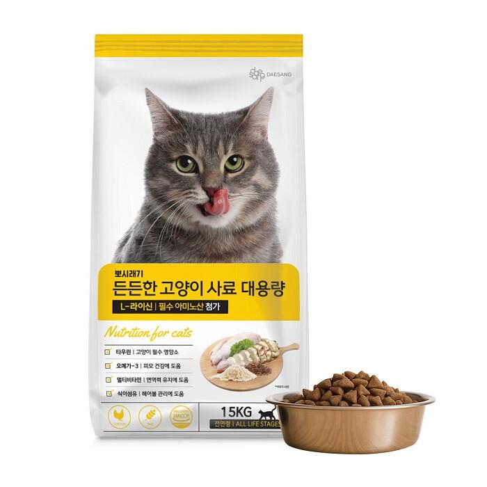 이번에 출시된 '뽀시래기 든든한 고양이 사료'는 미국사료관리협회(AAFCO) 기준을 고려하여 설계되어, 성장기부터 노령기까지 모든 연령대의 고양이에게 적합하다.