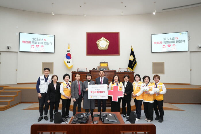 [시민일보 = 여영준 기자] 서울 중랑구의회(의장 최경보)가 최근 대한적십자사 서울지사에 2026년 적십자 특별회비를 전달하며 이웃을 위한 나눔 실천에 동참했다.