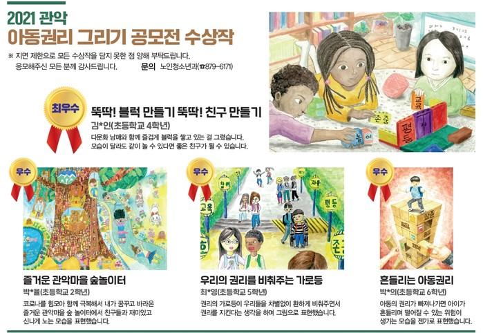 이와 함께 관악구 유튜브 채널 ‘라이브관악’을 통해 아동권리 그리기 공모전 수상작과 입상한 친구들의 인터뷰 영상도 함께 송출할 예정이다.