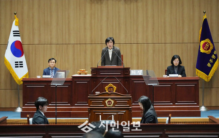 | ▲ 신수정 광주광역시의장 의회 의사 진행 자료사진 / 광주광역시의회 제공 |