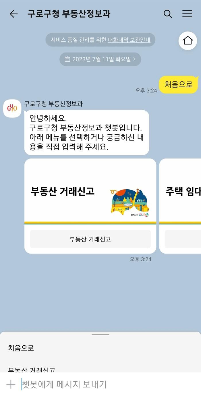 [시민일보 = 이대우 기자] 구로구(구청장 문헌일)가 챗봇 서비스 ‘구로봇’을 부동산 관련 민원 상담업무에 도입한다.