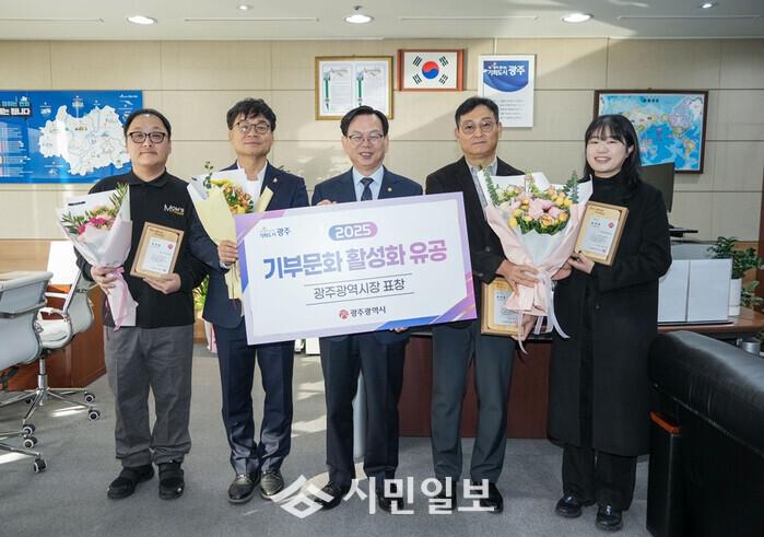 올해 기부문화 유공 시장 표창은 지역사회 나눔문화 확산에 기여한 ‘㈜신한은행 호남제주본부’, ‘맘스터치 전남대점’, ‘한국인터넷진흥원’ 등 단체 3곳과 임춘근 한국가스공사 과장에게 수여됐다.