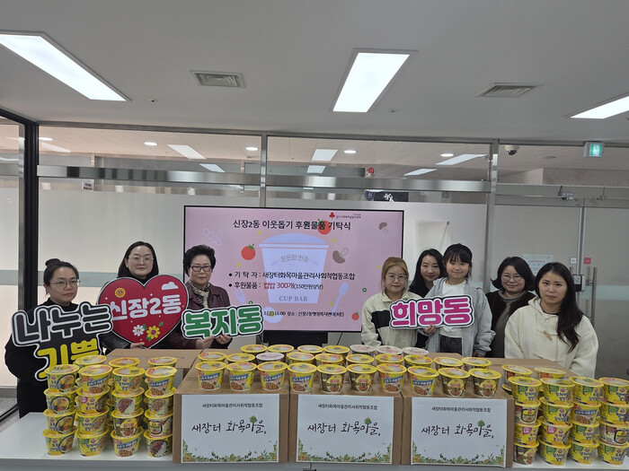[시민일보 = 민장홍 기자] 경기 오산시 신장2동 행정복지센터가 최근 새장터화목마을협동조합으로부터 지역내 저소득 계층을 위한 컵밥 300개(150만원 상당)를 기탁받았다고 17일 밝혔다.