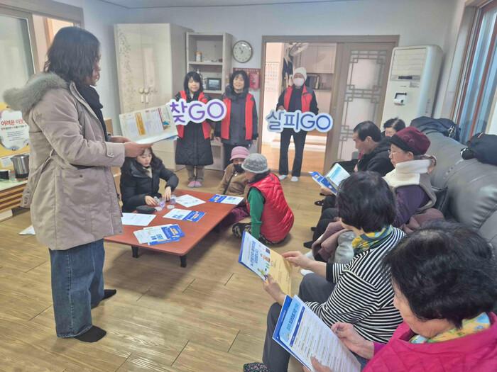 지역사회보장협의체 위원과 동 행정복지센터 직원들은 경로당을 방문해 ▲복지사각지대 발굴 홍보 ▲복지제도 안내 ▲위기가구 제보 접수 ▲홍보물 배부 등을 진행했다.