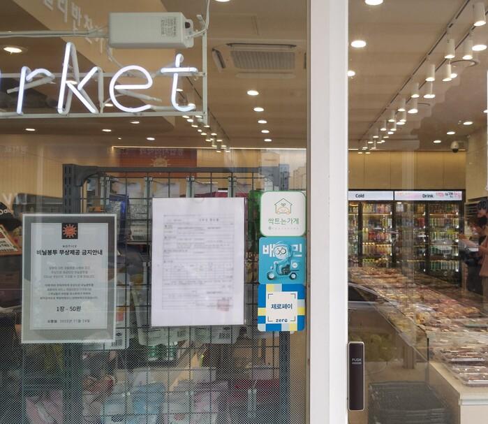| ▲ ‘싹트는 가게’ 인증 스티커가 붙은 한 반찬가게.(사진=송파구청 제공) |