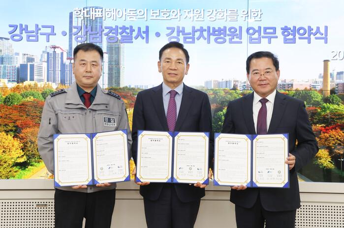 [시민일보 = 이대우 기자] 서울 강남구(구청장 조성명)가 강남경찰서, 강남차병원과 함께 ‘아동학대 전담의료기관 지정 및 아동보호 협력체계 구축을 위한 업무협약’을 체결했다.