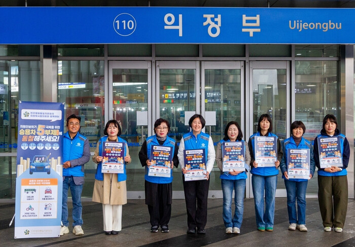 민주평화통일자문회의 의정부시협의회가 최근 경기 의정부역사에서 자문위원 20명이 참석한 가운데 ‘자원안보위기 극복과 에너지 절약 실천 캠페인 챌린지’를 진행했다. 사진은 캠페인 참여자들이 기념 촬영을 하는 모습. (사진=의정부시청 제공)