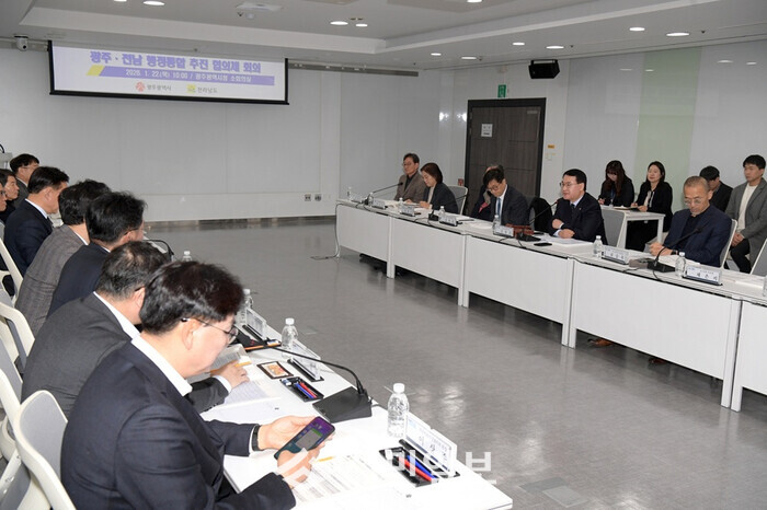 이날 회의는 지난 12일 협의체 출범과 함께 첫 회의를 개최한 이후 두 차례 온라인 회의에 이은 네번 째 회의로 그동안의 회의 결과를 공유하고, 광주·전남 행정통합 특별법안에 포함될 특례사항에 대해 심도 있는 논의를 진행했다.