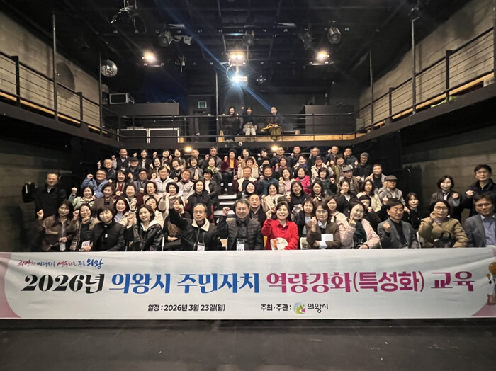 | ▲ 주민자치 역량강화 교육 참석자들이 기념 촬영을 하고 있다 /사진제공=의왕시 |