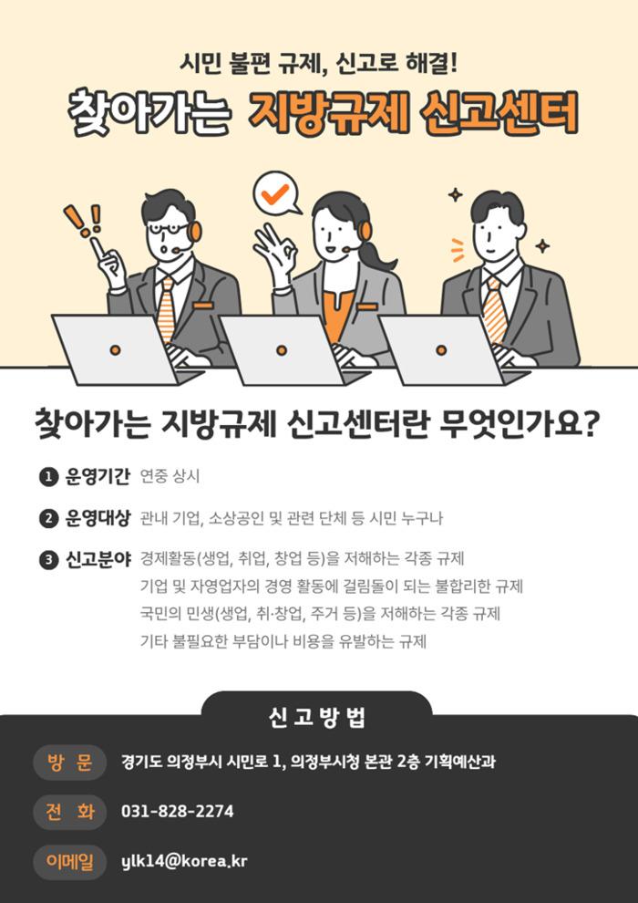 신고센터는 지역내 기업과 소상공인 뿐만 아니라 의정부시민이라면 누구나 자유롭게 신고할 수 있다.
