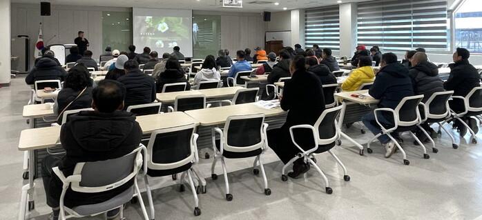 진주시는 25일 농업기술센터 강의실에서 딸기 재배 농업인 40여 명을 대상으로 재배기술 교육을 실시했다.