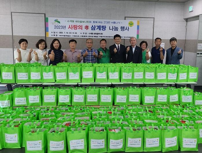 [시민일보 = 이대우 기자] 서울 은평구(구청장 김미경) 수색동은 최근 거동이 어려운 저소득 어르신 120가구에 삼계탕을 배달해주는 ‘사랑의 효(孝) 삼계탕 나눔행사’를 실시했다.