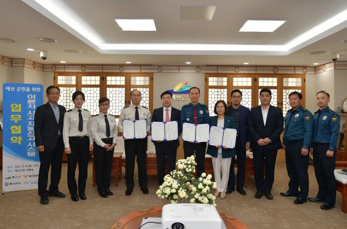 [예산=김의석 기자] 충남 예산군이 예산경찰서, 예산소방서, 교통안전공단과 교통사고 사망자 예방을 위한 이륜차 자동신고시스템 시범사업 상호업무 협약을 체결했다.